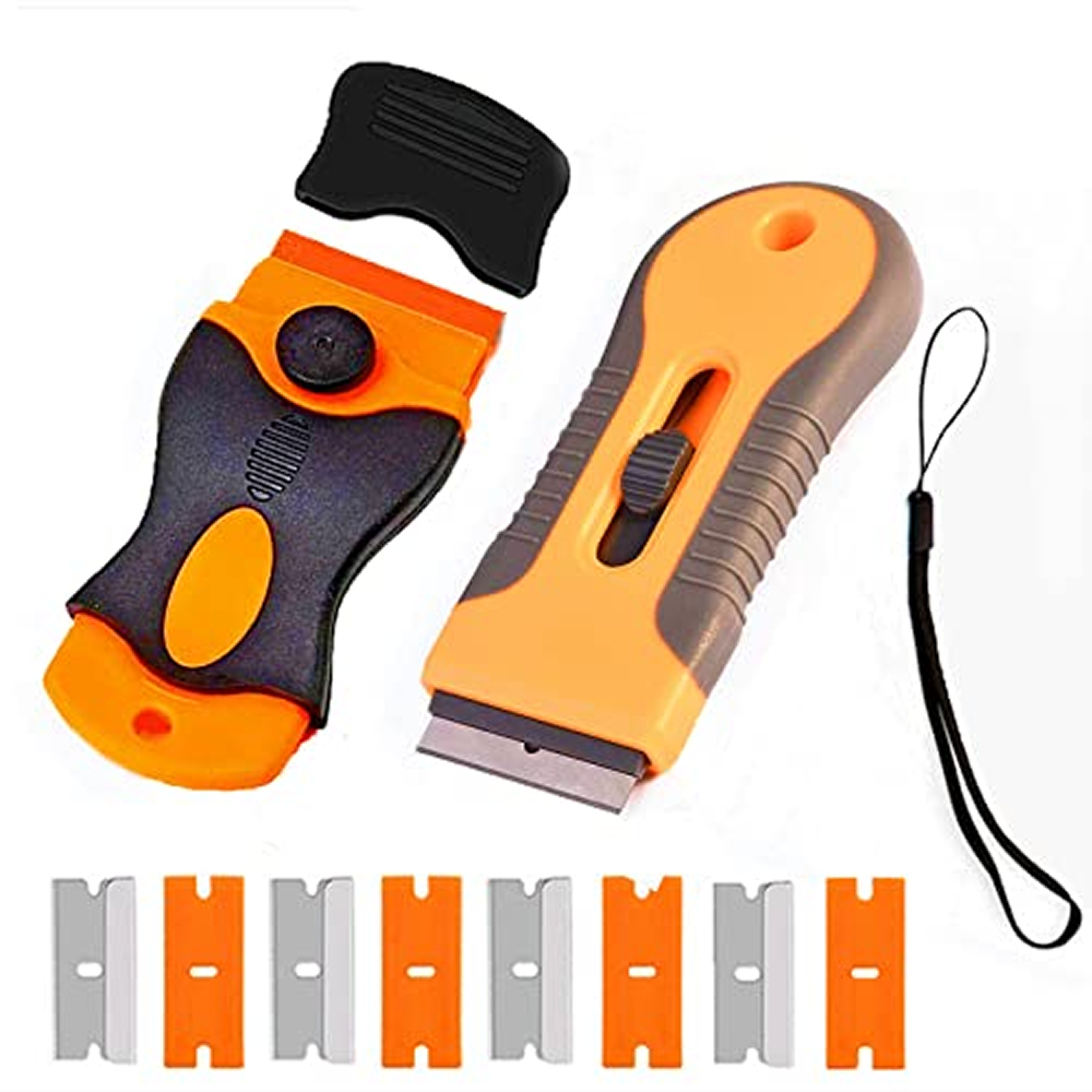 3Pack Plastic Razor Blades Scraper Tool (1Spatula)10 Double Edged blades,No Scratch Sticker Removal Scraper for Cleaning Adhesive Label Decal Glue from Stove top,Glass Window,Cooktop,Car Windshields.